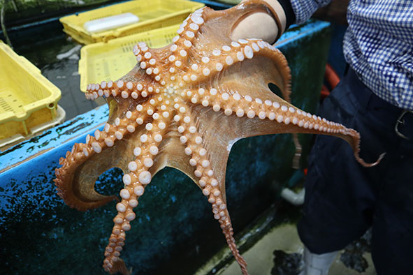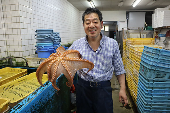 6~7月のたこは「麦わらたこ」と呼ばれ、一年の中でも特に美味といわれる。今回はまだこ(真蛸)の水揚量日本一を誇る、明石にある魚の棚商店街「株式会社 松庄商店」でお話を伺った。