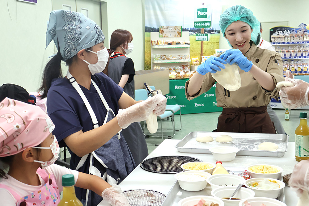 Dラーニングとは西区独自の取り組みで、区内の大学や企業の協力のもと、子どもの将来の選択肢を増やす小学生向けの多様な学びの場を設けている。今回は敷島製パンの協力で、パンについて学び、ピザ作り体験もできるイベントが開催された。