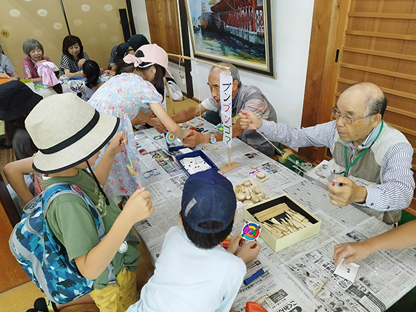 境内では住職らがポップコーンやかき氷、たこせんなどをふるまい、子どもたちは頬張りながら手すき和紙やボールすくいに挑戦。あちこちから歓声が響き渡った。本堂や書院ではブンブンゴマやバランスとんぼなど10種類以上の工作コーナーが並び、夢中になって作品を完成させる子どもたちの姿があった。
