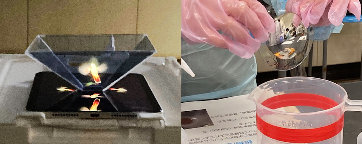 (左)ホログラムピラミッド(右)銀鏡反応
