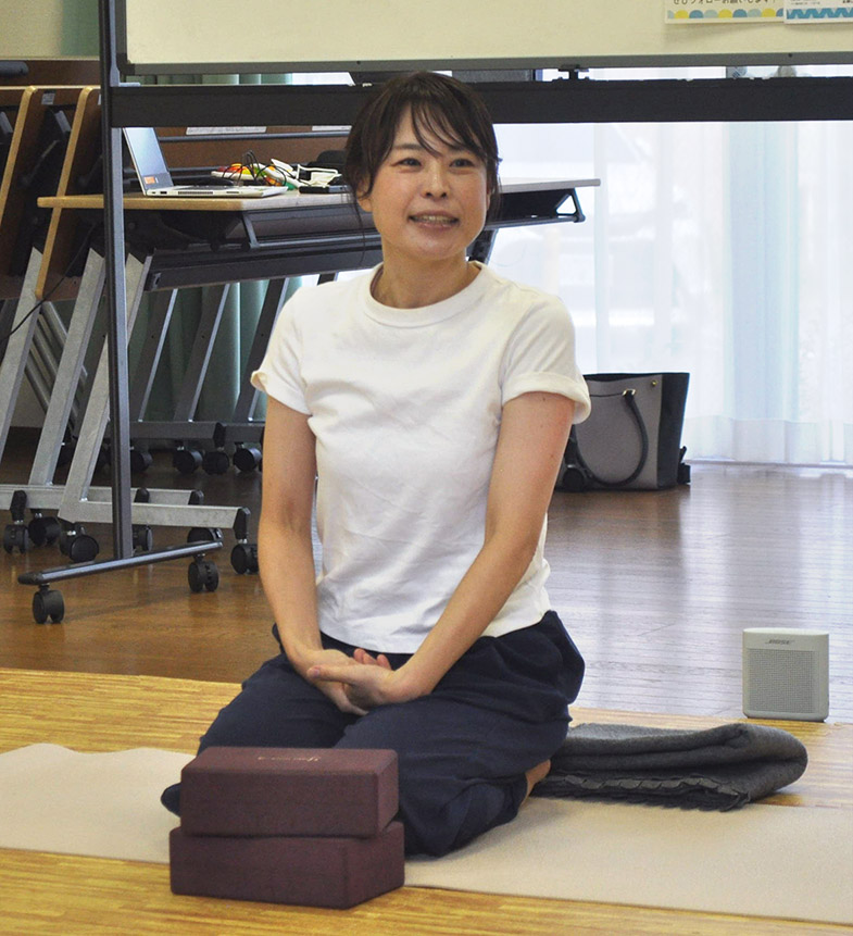 10月から毎月子育てイベントを開催することになり、第1回目の「親子ヨガ」が同集会所で行われた。講師を務めたのは名谷のヨガスタジオ「treetree studio」代表の林奈保さん。