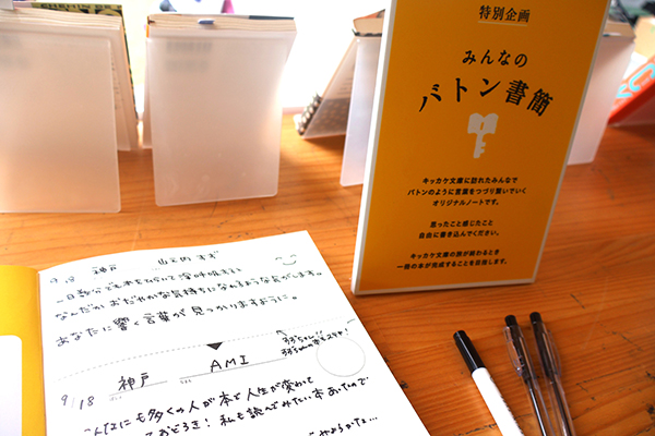 家族とともに立ち寄った廣田佳幸さん(須磨区)は、絵本作家のたなかしんさんが選んだ本を手に取り「作家になる前の彼に出会いました。本当に絵本作家になって活躍していて、うれしいです」と感慨深げに話した。美濃奈津美さん(須磨区)はくじで引き当てた『好きなことだけして生きていく』を手に「好きな事をしていたら、月曜日が楽しみになるというフレーズが目に留まりました。読んでみたいと思います」と微笑んだ。