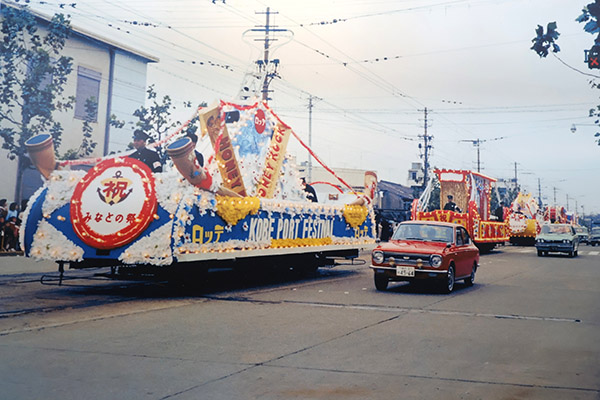 神戸まつりの全身「神戸みなとの祭り」では市電を飾りつけた「花電車」が